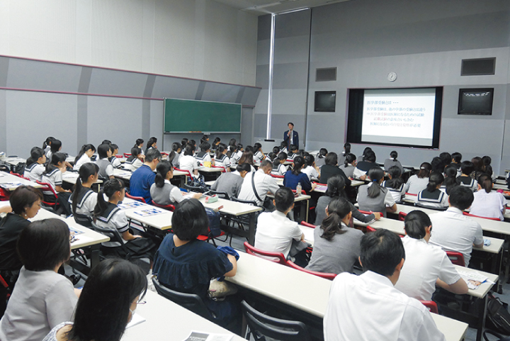 なお、セミナーでは富士学院の宣伝などは一切行わないため、高校から驚かれることもありますが、その姿勢こそが信頼につながっていると感じています。実際に、県外から高校ぐるみで生徒・保護者・先生がバスで校舎見学に訪れてくださったり、医学部志望者向けの保護者会を実施してく ださる高校もあります。こうした予備校の枠を超えた取り組みもまた、目先の受験だけでなく「良医を育成する」という目的があってこそ続けている活動なのです。