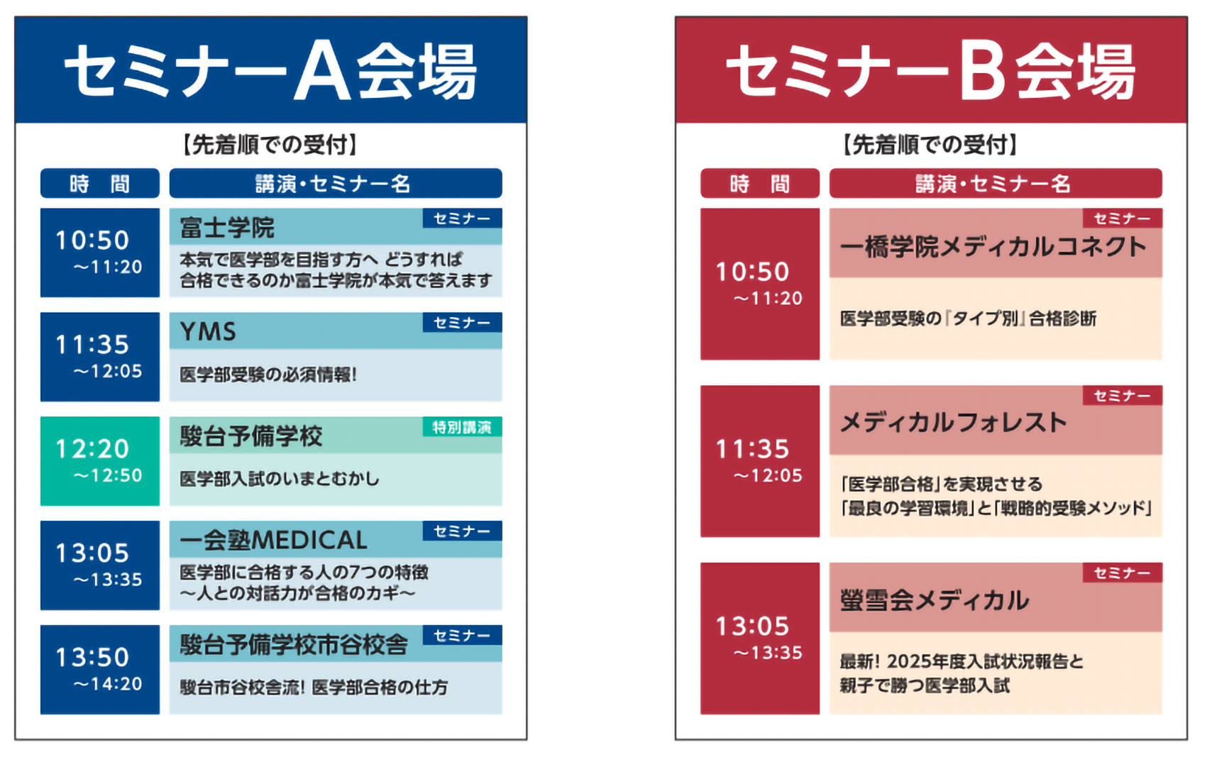 ※特別講演・受験対策セミナー・講演セミナーは当日先着順