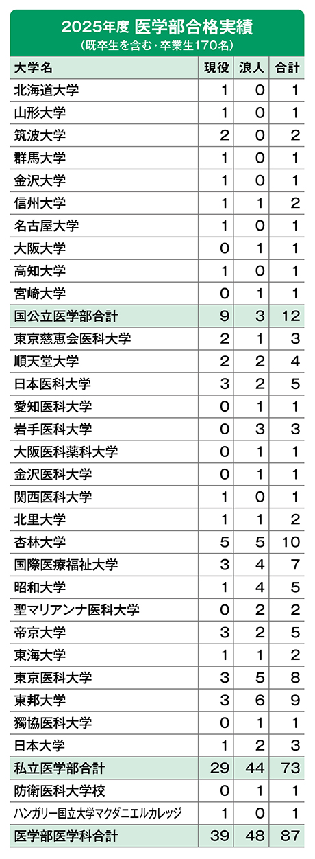 大橋 例年、理系の半分くらいは医学部志望で、人数でいえば4~50人ほどは医学部をめざしています。